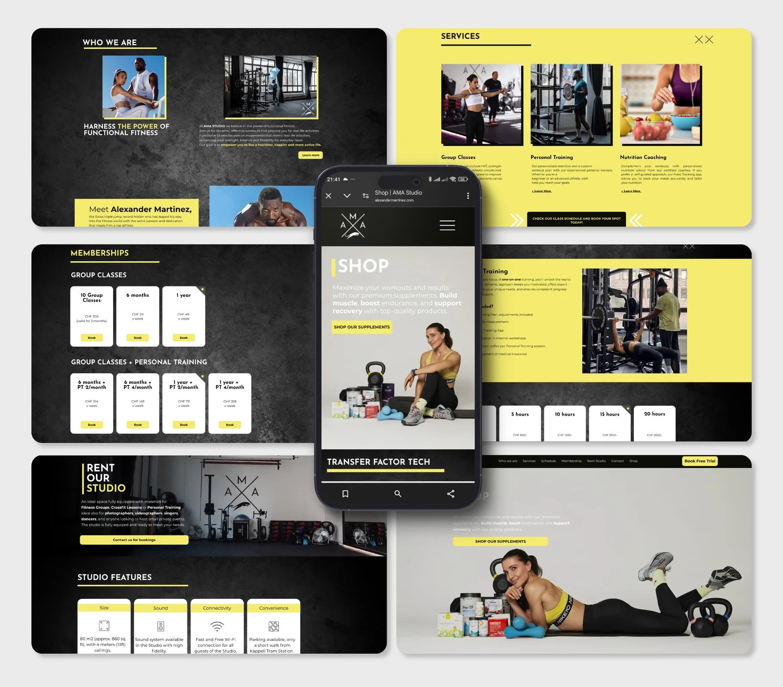 Founded by Alexander Martinez — Switzerland's triple jump record holder — AMA Studio was created with the mission of transforming lives through fitness. We had the honour of giving their brand a full rebrand, together with web design and development.