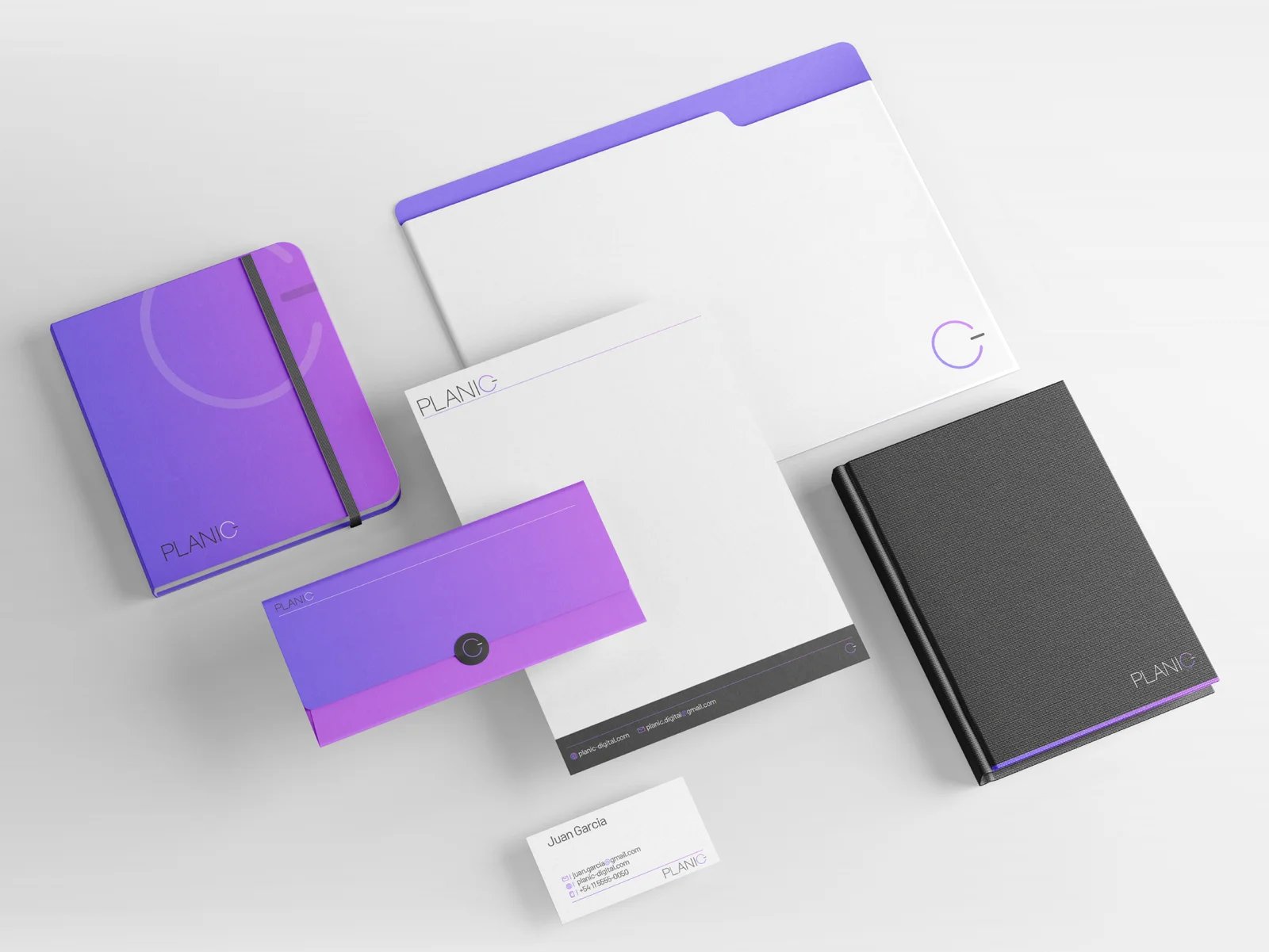 For color, we went straight to violet and magenta — the palette of vitality, creativity and digital energy. And in the logo, we hid something: a camouflaged power button. A small detail that carries the whole idea — turn on your ideas, turn on your brand. That's Planic.