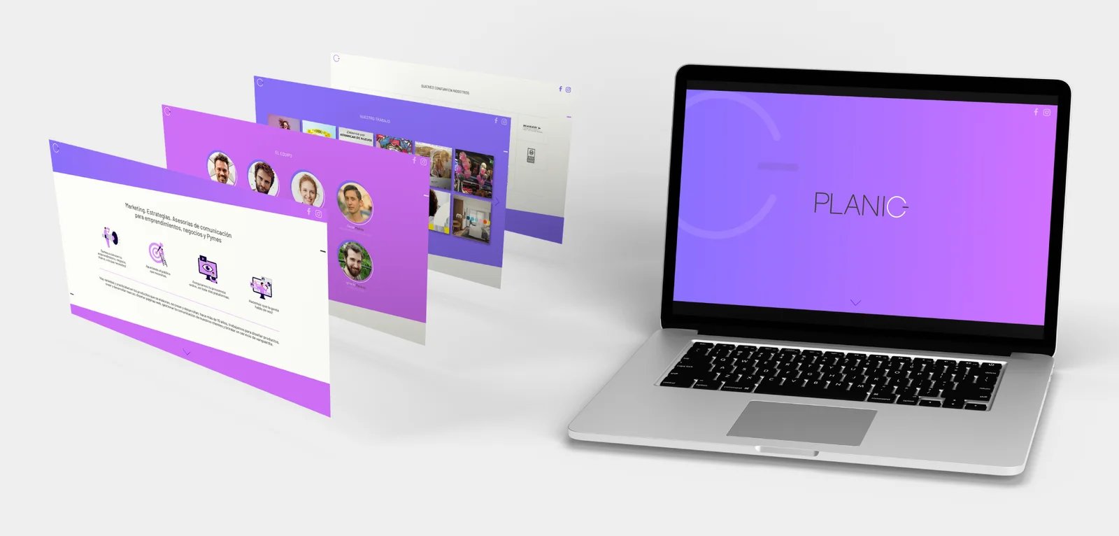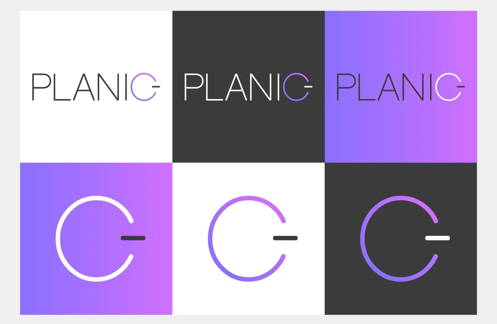 For color, we went straight to violet and magenta — the palette of vitality, creativity and digital energy. And in the logo, we hid something: a camouflaged power button. A small detail that carries the whole idea — turn on your ideas, turn on your brand. That's Planic.